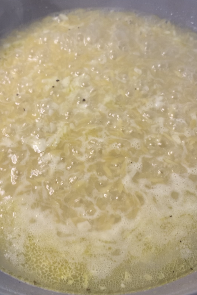 - Pour in the broth, season with black pepper and any additional seasonings as desired. Bring to a boil then lower the heat to simmer. Stir occasionally and cook for about 10-15 minutes until the orzo is cooked. Add additional broth as needed if it absorbs before the orzo is finished cooking.