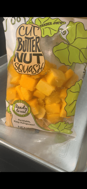 - 12 oz Butternut Squash, cubed into bite-sized pieces; I used Trader Joe's Pre-Cut Butternut Squash