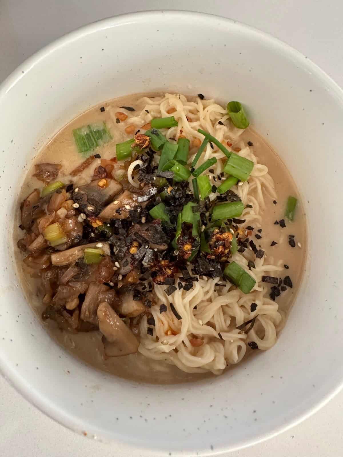 - Evenly divide the noodles and broth among bowls. Spoon the mushroom mixture into the bowls. Serve with toppings of your choice such as green onions, furikake, chili oil, and soft boiled eggs.